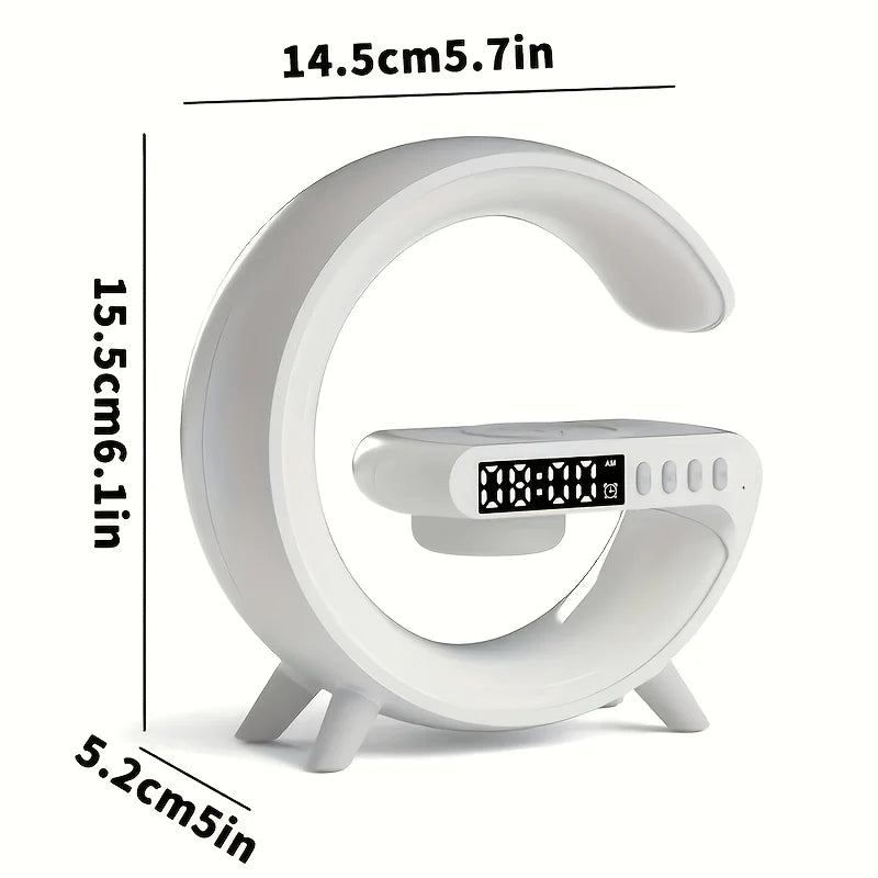 Charge, play music, and set the mood with our Multi-Functional Wireless Charger. Compatible with all mobile phones, it also serves as a music player, a colorful smart light, and a clock display. Stay organized and entertained with this all-in-one device.